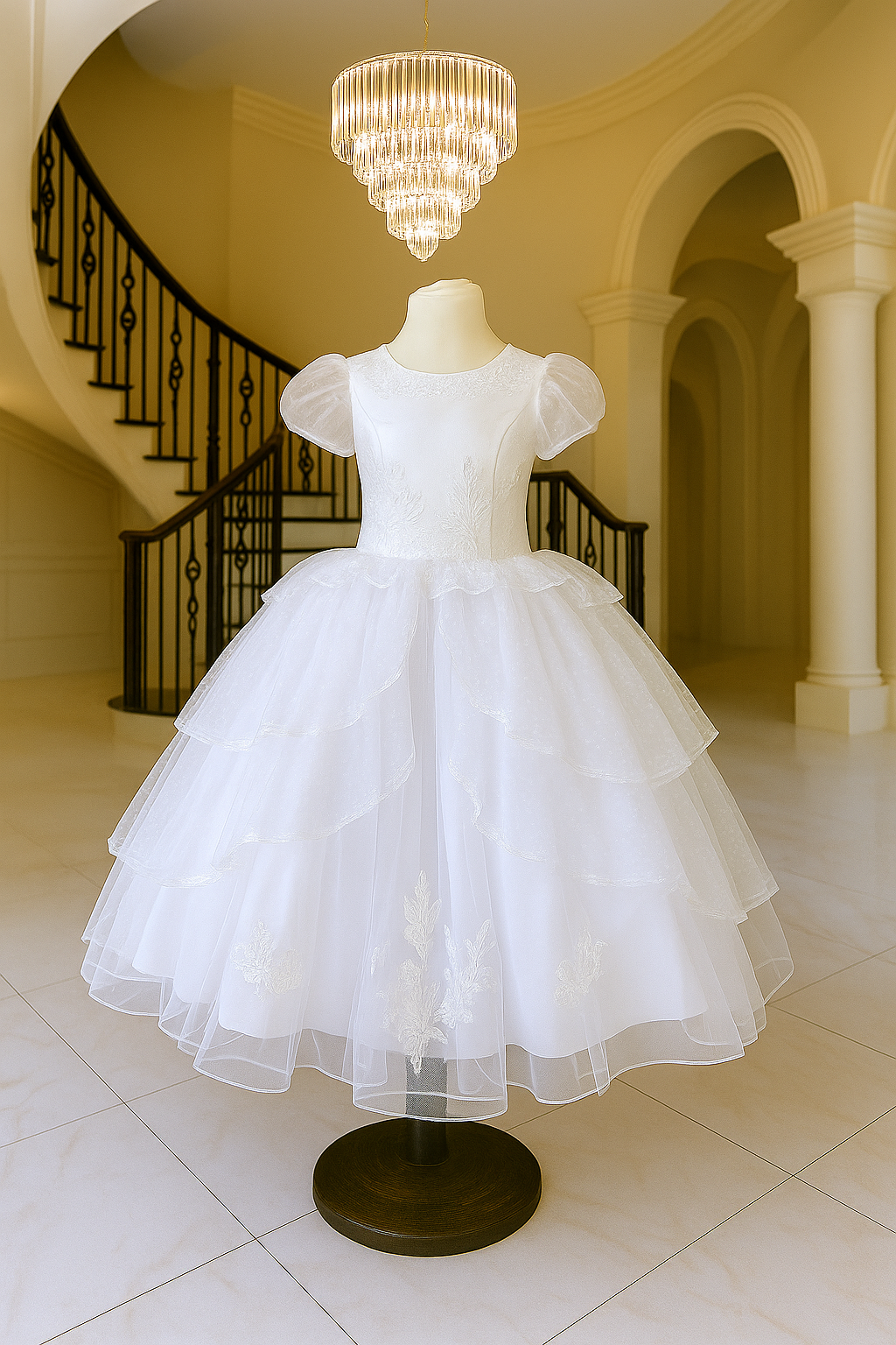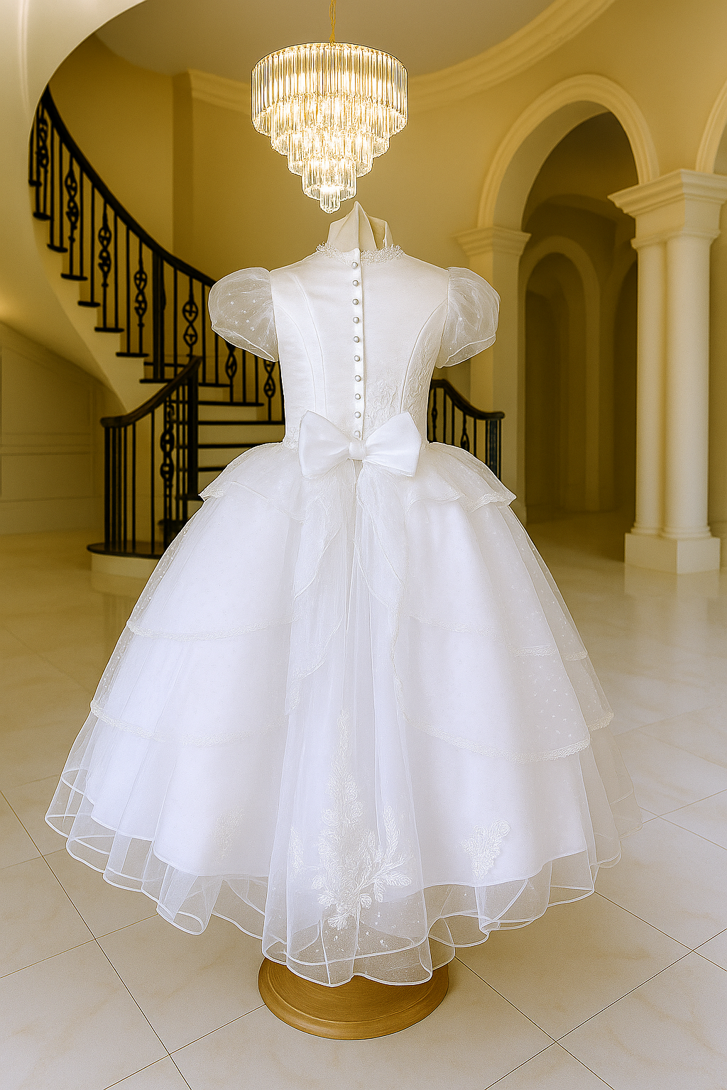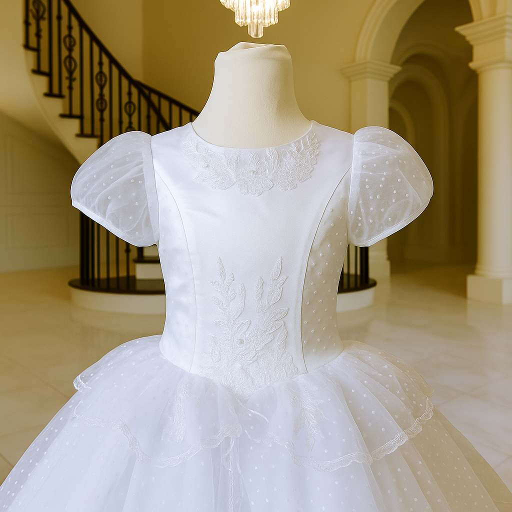 Perfect for First Holy Communion or flower girl occasions, this gown blends classic innocence with contemporary detail.